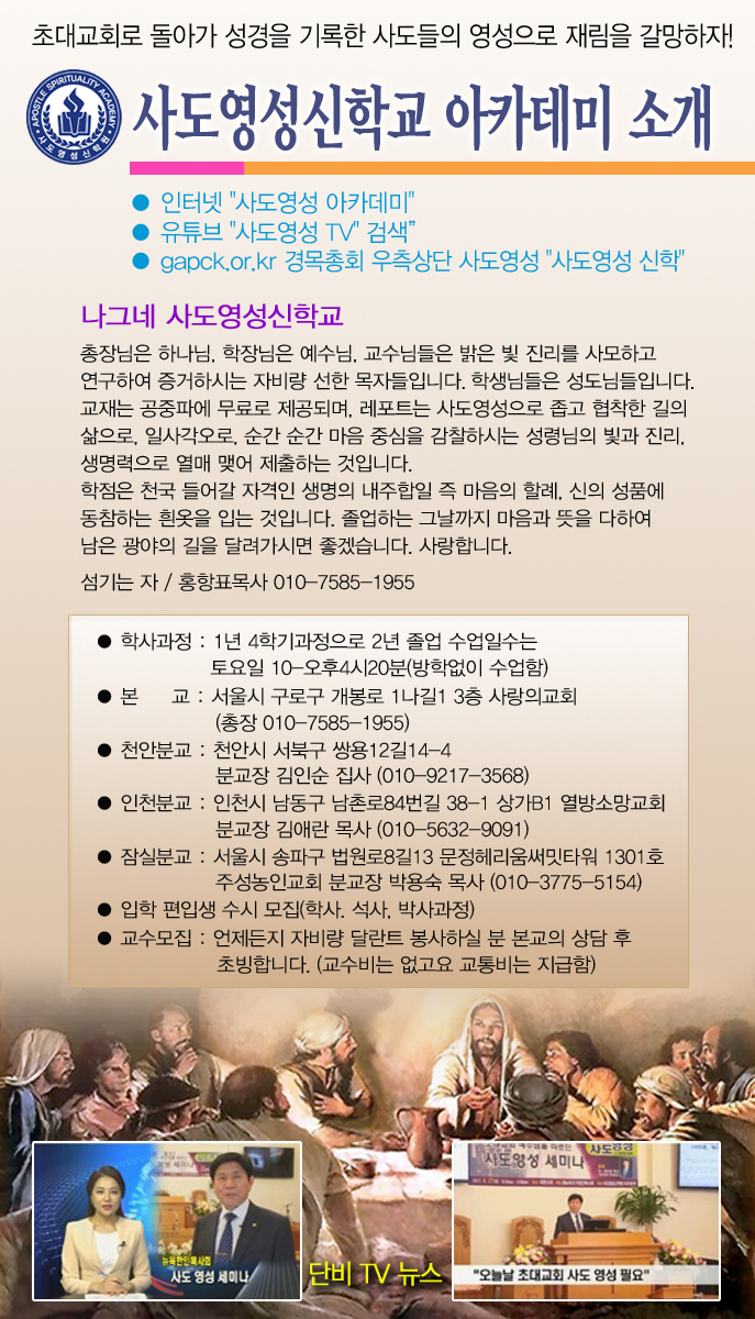 2025년 8월 30일 천안분교 여름학기종강, 가을학기 개강예배시 주소변경합니다.